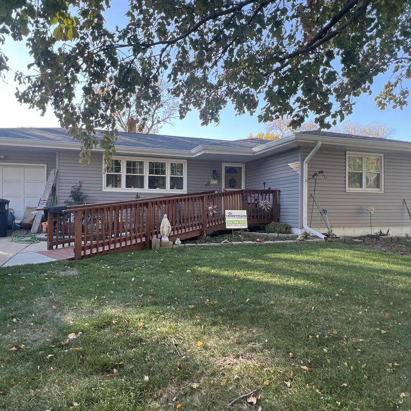 HOMETOWN ROOFING replaced hail-damaged shingles with new CertainTeed Landmark shingles in Hunter Green. The team installed seamless aluminum gutters, downspouts, and a Gutter RX leaf guard. They added Mastic vinyl siding, aluminum fascia and window wraps, and a new garage door. This project took place in Omaha, Nebraska.